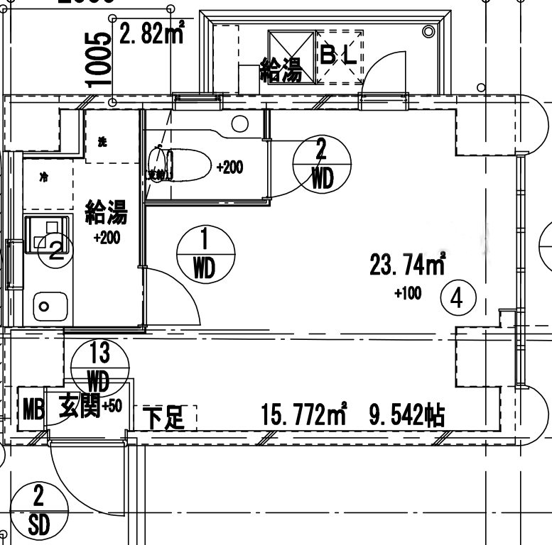 | 2階A号室 (面積:23.74㎡、7.18坪) 坪当単価 (バル含む) 13,926円 | |||